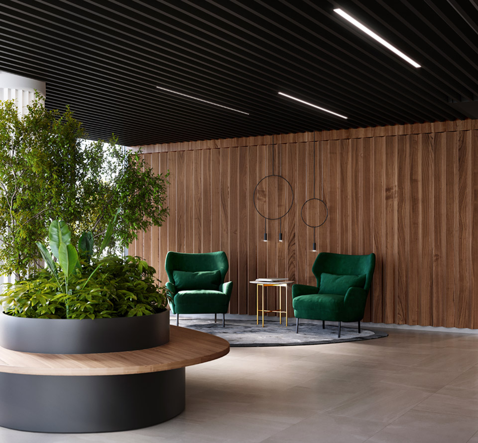 - Gastronomy zone, retail outlets and service points on the ground floor